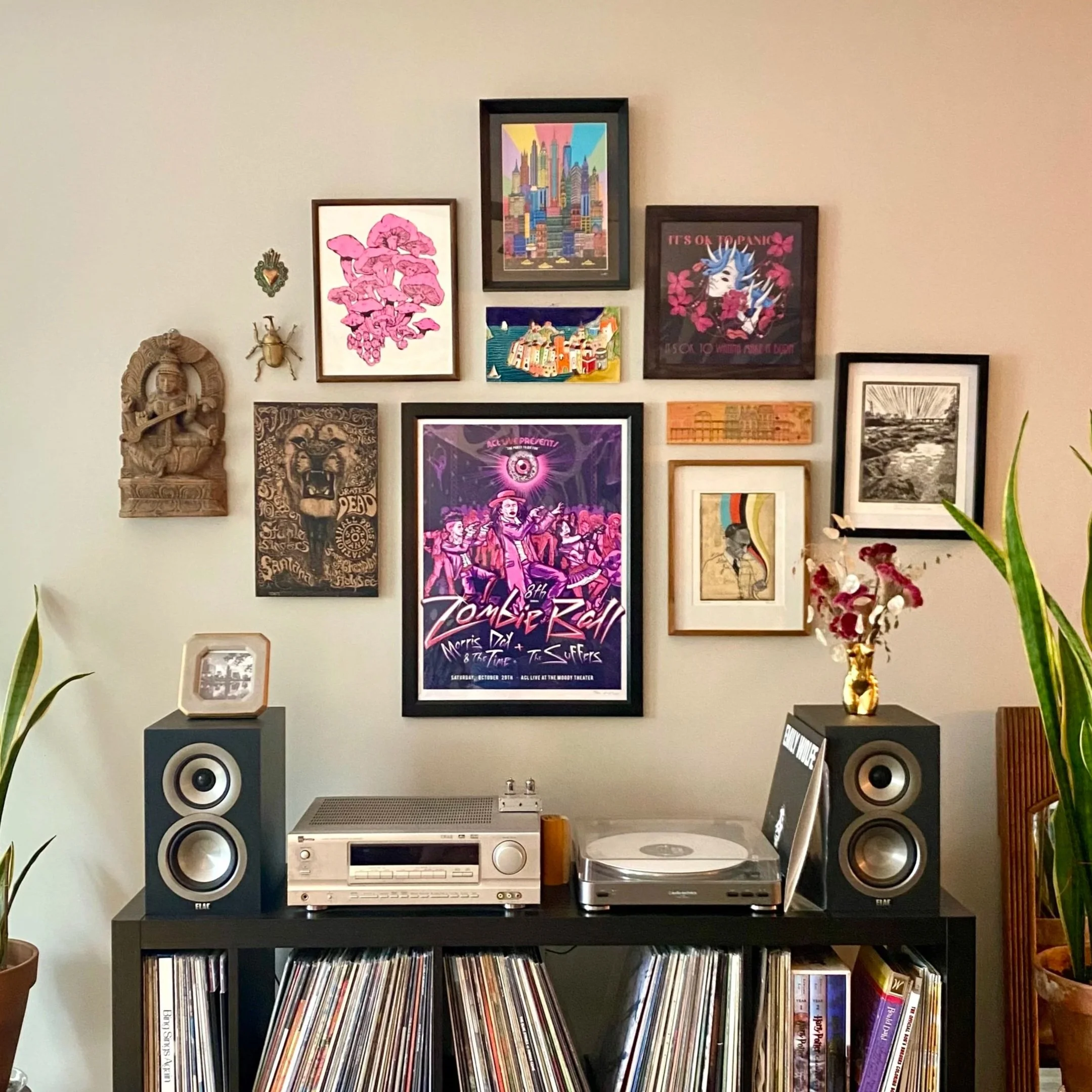 I cannot express how much I love this process - it fills me with utmost joy to find frames, shop local stores and thrift shops for funky little items, and above all - to support my long list of artist friends who make incredible work. You tell me the vibe you’re looking for and I can do the rest - from “I have no idea please take this and run with it” to “I want only floral and botanical elements” or “All blues and greens” to “Lots of gold and make it vintage.” We will meet to look at your space, I will curate and collect the items for the design and present you will a digital mock up of the final layout to approve, and then I will bring in a team to help with install. Et voilà!