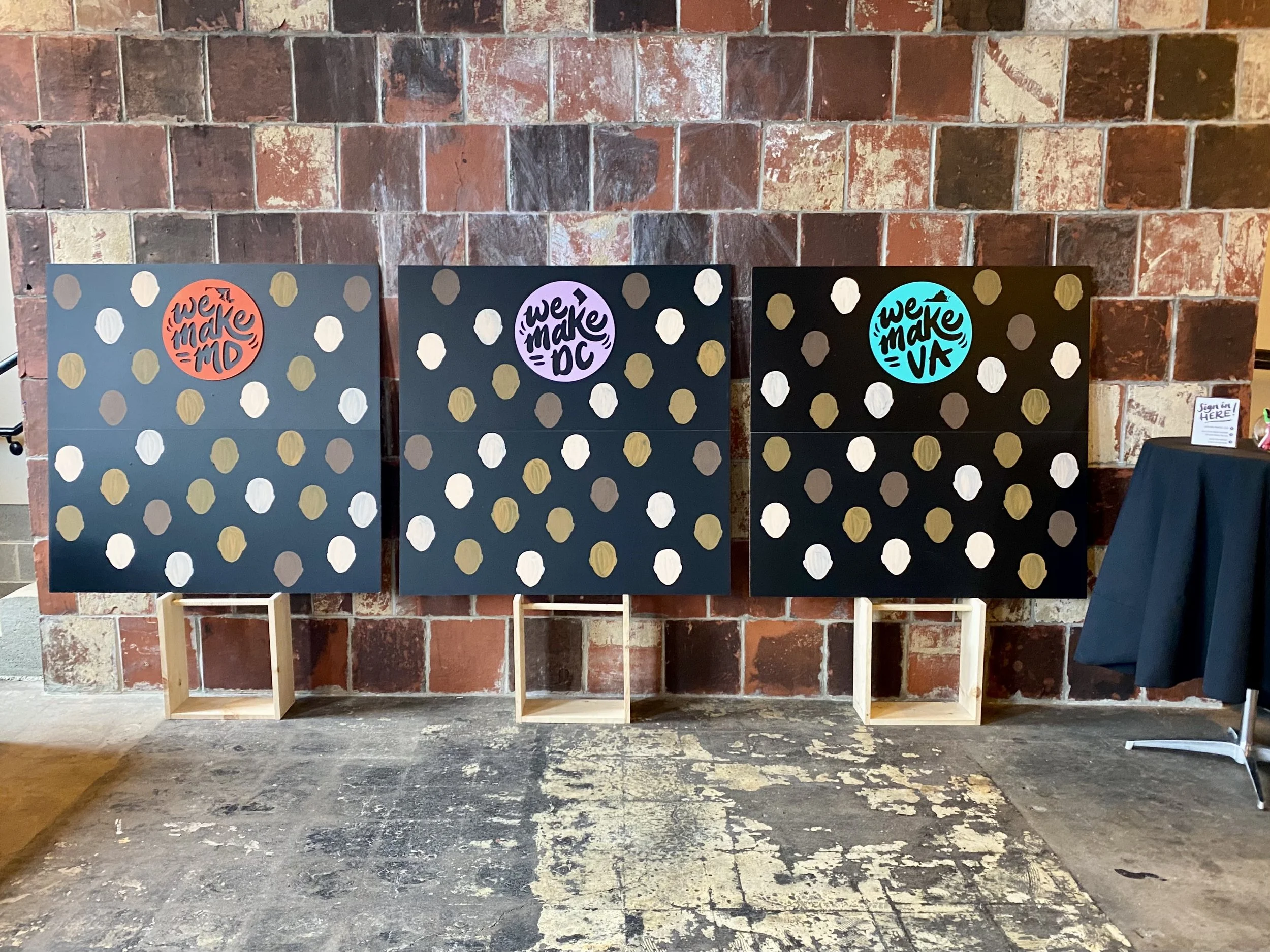 Branding and event titles for the back of a stage, whether for panelists, speakers, or musicians.